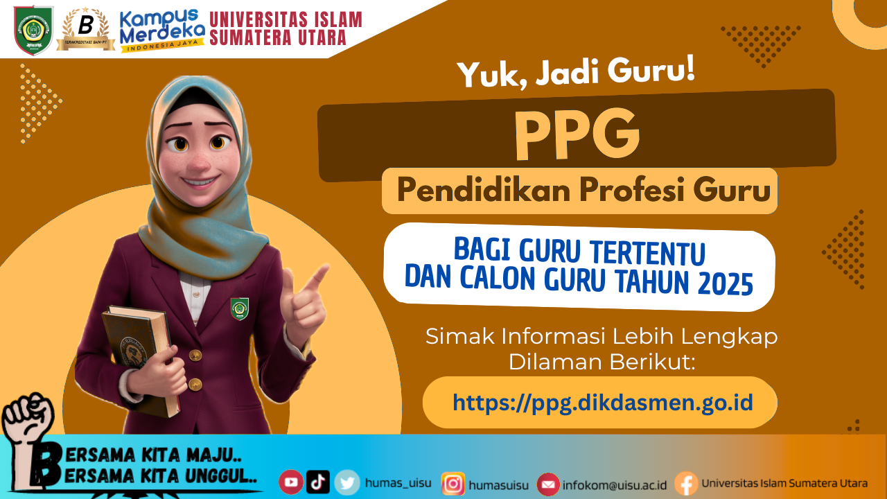 Homepages Sistem Terintegrasi SISFO UISU Brosur PMB BROSUR UISU AKREDITASI UISU AKREDITASI SISTEM AKADEMIK SIAKAD Jurnal Penelitian E-JOURNAL Perpustakaan UISU E-LIBRARY Universitas Islam Sumatera Utara Selamat Datang Mahasiswa/i Pendidikan Profesi Guru Berita Informasi Posted on September 12, 2025 September 20, 2025 0 Comments Categories Berita Informasi, Lintas populer, Pengumuman PROGRAM PPG BAGI GURU TERTENTU TAHAP 3 TAHUN 2025 PROGRAM PPG BAGI GURU TERTENTU TAHAP 3 TAHUN 2025... Dekan FKIP Dr. Julia Maulina, M.Si Pengumuman 12Sep2025 Author ADMIN PPG PROGRAM PPG BAGI GURU TERTENTU TAHAP 3 TAHUN 2025 PROGRAM PPG BAGI GURU TERTENTU TAHAP 3 TAHUN 2025... Event Workshop Video Profil UISU Video Profil FKIP UISU LATEST NEWS Index Terpopuler 12Sep2025 Author ADMIN PPG PROGRAM PPG BAGI GURU TERTENTU TAHAP 3 TAHUN 2025 PROGRAM PPG BAGI GURU TERTENTU TAHAP 3 TAHUN 2025... All Category